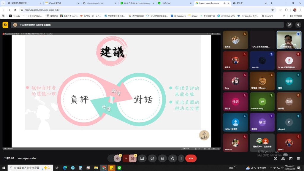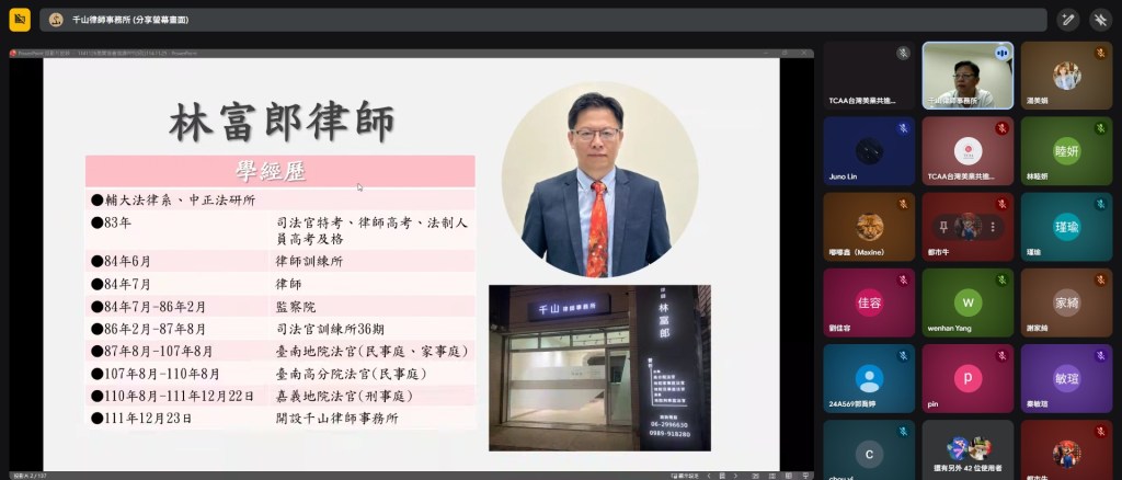 這堂課由協會特聘、長期處理美業案件的 林富郎律師 親自解析,沒有高來高去的術語,只有一句一句「如果是你店裡發生,該怎麼做才不會錯」。